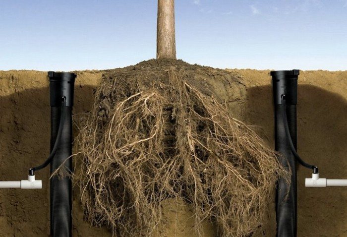 - Корни получают необходимое количество кислорода, поскольку вода поступает изнутри, не утяжеляя верхний слой почвы. Это особенно эффективно для тяжелых и средних типов грунта.