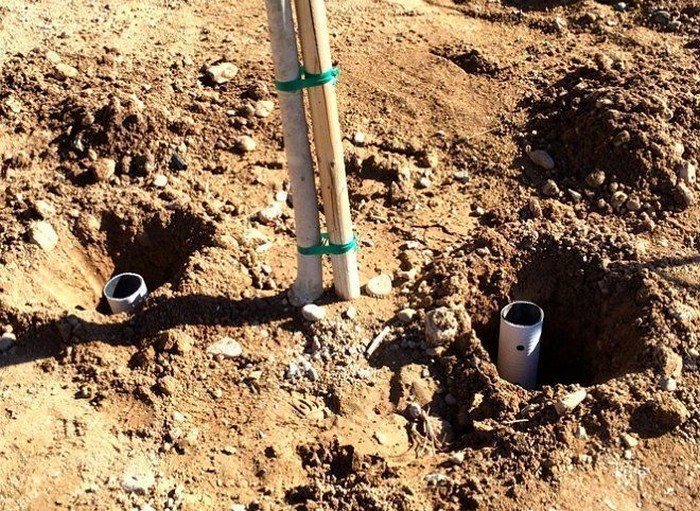 Вертикальная система орошения предназначена для полива отдельных деревьев и кустарников, которые, как правило, требуют значительного количества влаги. Поэтому диаметр шланга рекомендуется не менее 5 см. Процесс установки системы в сочетании с посадкой растений выполняется в следующем порядке: