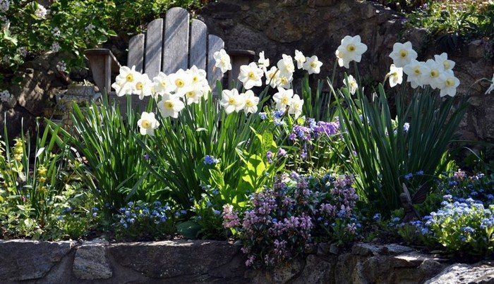 Луковичные многолетники: тюльпаны, нарциссы, гиацинты, мускари, лилии, лютик. Клубнелуковичные многолетники: крокус, гладиолус.