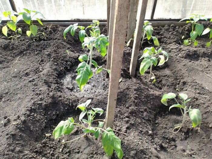 В каждую лунку помещают 1 чайную ложку кальциевой селитры. После этого гранулы необходимо тщательно перемешать с почвой и произвести полив. Затем аккуратно устанавливают кустик томата, стараясь не повредить земляной ком. Высаженную рассаду засыпают плодородной землей и обильно поливают.
