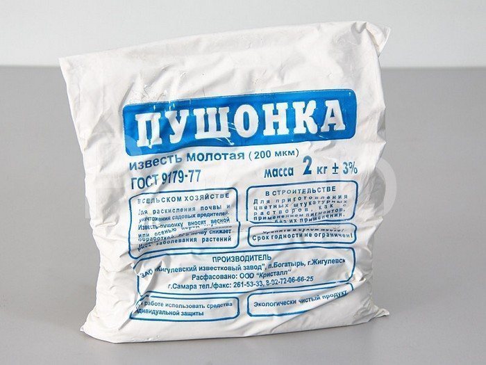 - Гашеная известь (пушонка). Для получения этого раскислителя известь смешивается с водой, что позволяет нейтрализовать кислую почву.