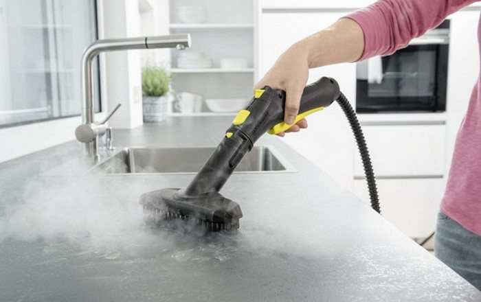 Еще один эффективный метод борьбы с жирными пятнами на кухонной мебели – это применение пароочистителя. Этот прибор не только помогает в очистке, но и обеспечивает дезинфекцию. Он подходит для всех типов материалов, из которых изготовлен кухонный гарнитур. Высокая температура пара позволяет даже застарелому жиру плавиться, что значительно упрощает его удаление с поверхности. Данный способ является безопасным, не повреждает мебель и не вызывает аллергических реакций.