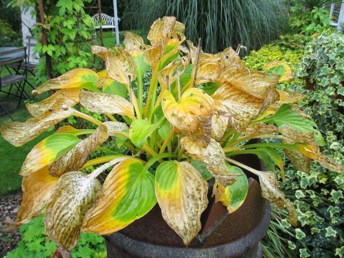 Почему у хосты желтеют и сохнут листья?