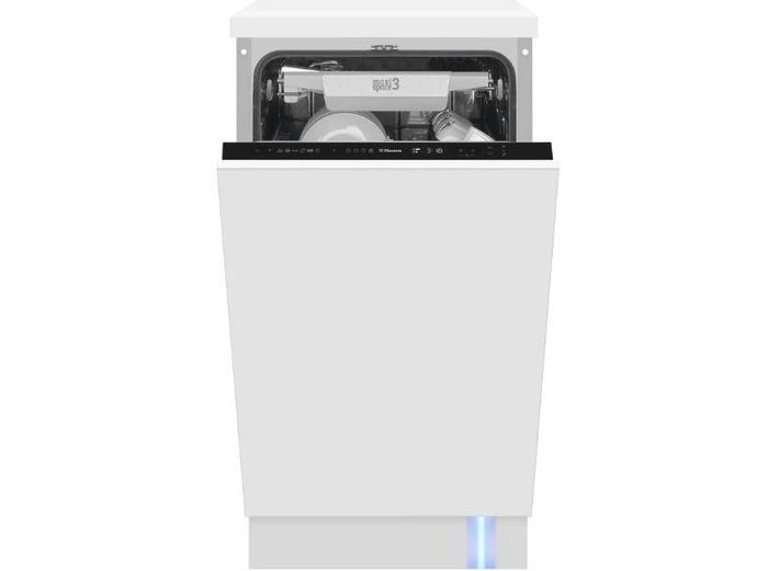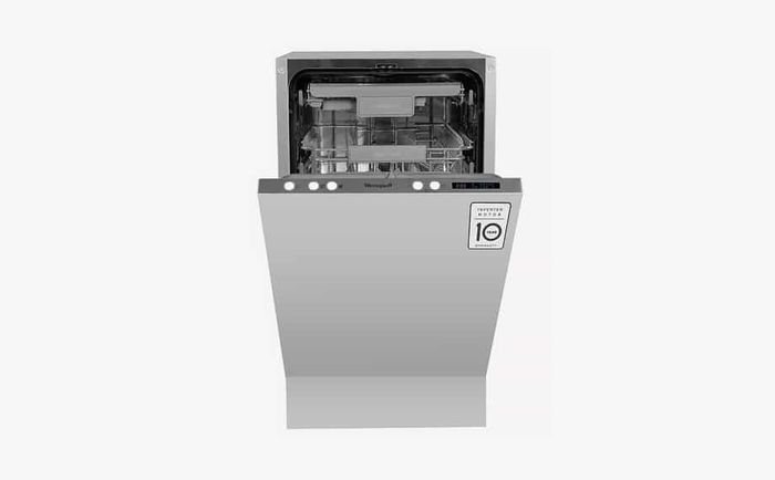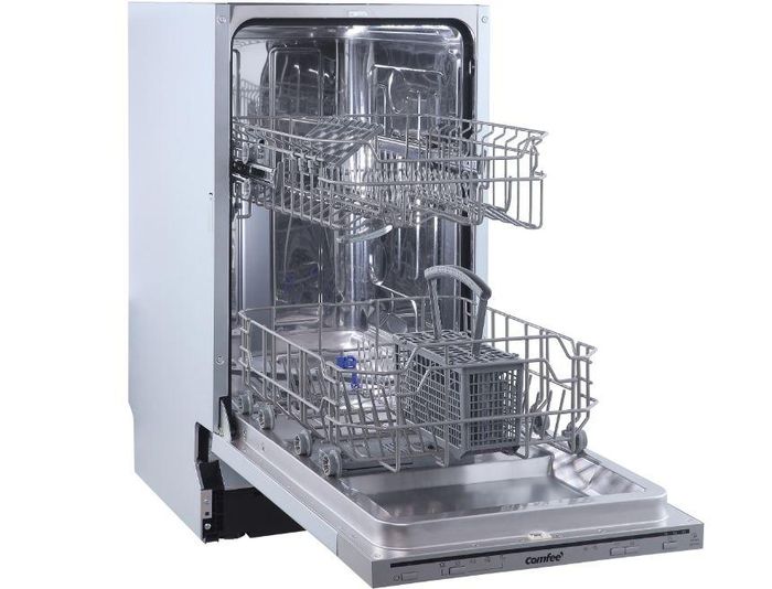 Встраиваемая компактная посудомоечная машина предлагает те же функции, что и крупные модели. Она способна разместить до 10 комплектов посуды. Устройство отличается стильным и современным дизайном, его корпус выполнен в серебристых и серых оттенках. Внутри используется нержавеющая сталь, а камера изготовлена из материала, который не подвержен коррозии и механическим повреждениям от посуды.