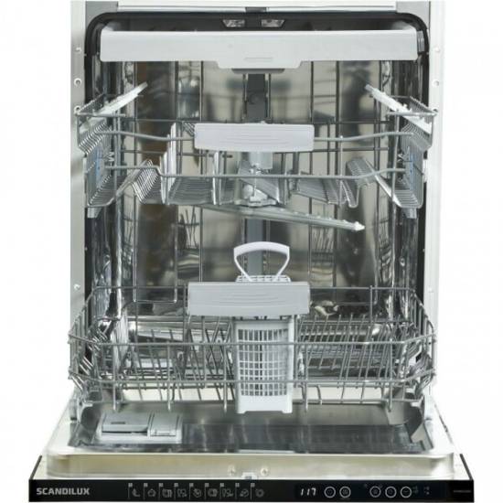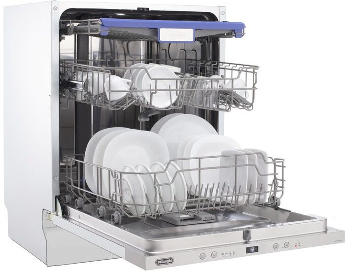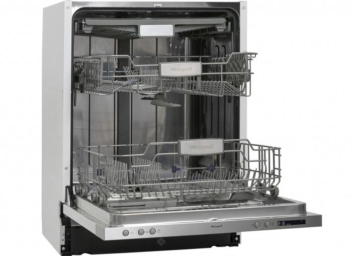 Это наиболее доступная и экономичная модель в нашем обзоре. Полноразмерная посудомоечная машина вмещает 12 комплектов посуды и расходует всего 11 литров воды и 750 Вт электроэнергии за один цикл. В ней предусмотрено 5 предустановленных программ, с возможностью регулировки температуры в диапазоне от 45 до 70 градусов. Быстрый режим предназначен только для мытья посуды без сушки, что делает его удобным для слабозагрязненных тарелок и в ситуациях, когда нужно быстро очистить посуду (в этом режиме работа занимает 1,5 часа). Также можно запускать машину с половинной загрузкой на любом из режимов, при этом она автоматически подстраивает рабочие параметры. Функция отложенного старта также присутствует. На панели управления расположены индикаторы уровня соли и ополаскивателя.