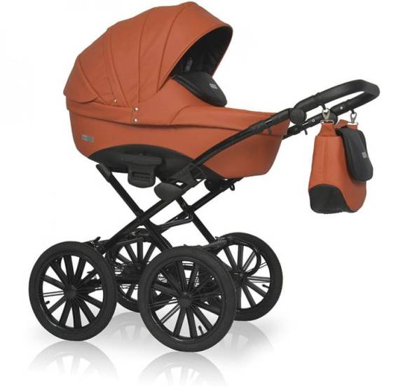 Универсальная коляска от польского бренда Рико выполнена из экокожи и представлена в разнообразной цветовой палитре. Эта модель обладает легкой алюминиевой рамой, которая оснащена двойной регулируемой амортизацией, что делает ее удобной для транспортировки и хранения благодаря возможности компактного складывания. Оба модуля имеют новые крепежные элементы, что упрощает процесс их замены.