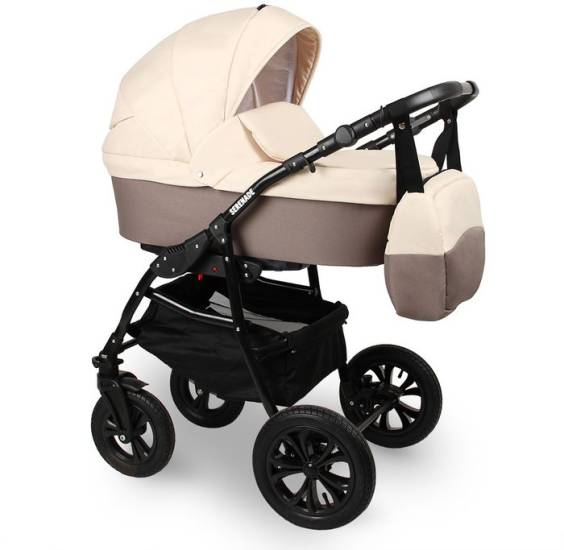 Коляска оснащена бескамерными колесами с полиуретановыми шинами, которые обеспечивают отличную амортизацию, аналогичную колесам с камерами. Однако бескамерные варианты легче и более устойчивы к износу. В комплект входят стандартные аксессуары.
