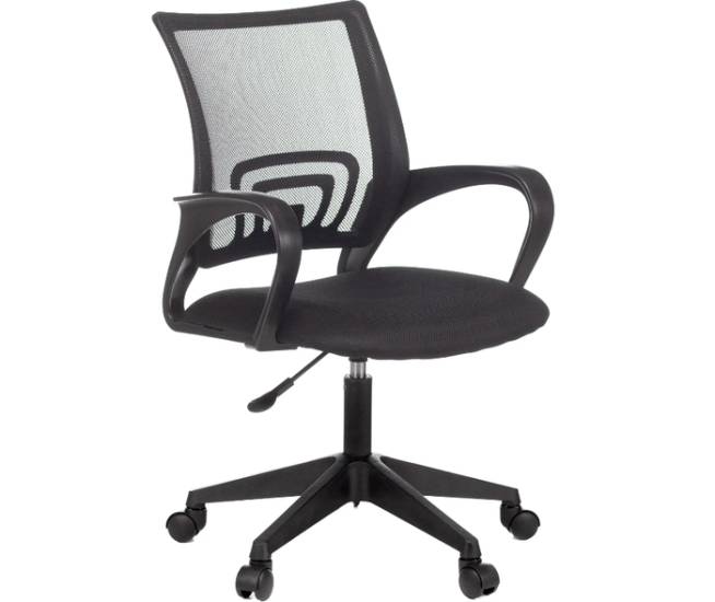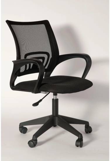 Спинка кресла изготовлена из дышащей сетчатой ткани (акрила), которая эффективно поддерживает спину и обеспечивает хорошую вентиляцию, предотвращая перегрев в области поясницы. Сиденье, наполненное качественным поролоном, гарантирует комфортную посадку. Каркас включает пластиковые элементы, а для удобства передвижения предусмотрены колёсики из нейлона, которые не повреждают пол.