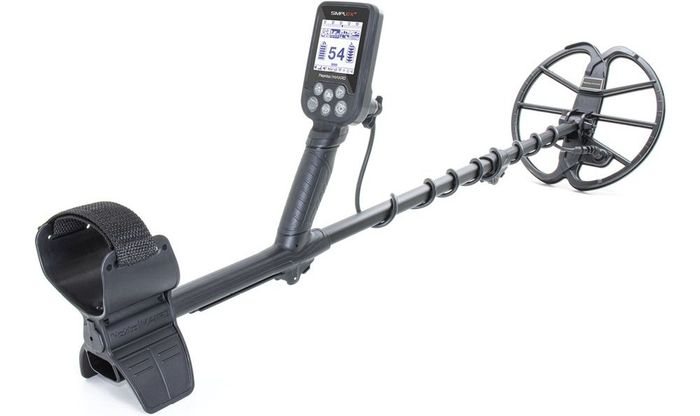 Это одна из лучших моделей среди полупрофессиональных металлоискателей. Она оснащена DD катушкой размером 11 на 9 дюймов. Благодаря технологии DD, сигнал распространяется в виде цилиндра, что позволяет охватывать более широкий участок земли. Устройство работает от четырех батареек и имеет индикатор уровня заряда. Подлокотник усилен дополнительными ребрами жесткости и оснащен мягкой подкладкой для удобства локтя. Штанга состоит из двух телескопических частей. Отличные характеристики позволяют эффективно находить мелкие объекты, включая монеты, даже в сложных условиях.