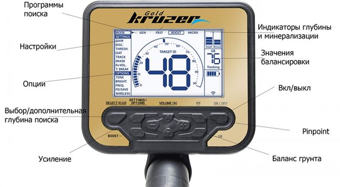 Оснащен крупным ЖК-дисплеем и предлагает пять режимов поиска.