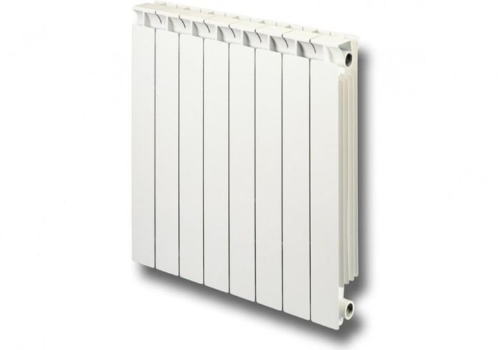 Внутренние элементы радиатора, которые соприкасаются с водой, выполнены из стали. Внешняя оболочка изготовлена из алюминия, что обеспечивает отличную теплоотдачу. Устройство выдерживает давление до 35 атмосфер. Силиконовые прокладки между секциями делают этот отопительный прибор надежным и долговечным.