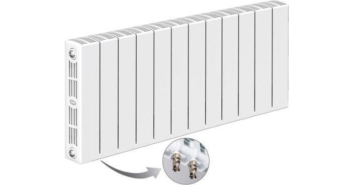 Эта модель подходит для установки как в системах центрального, так и автономного отопления. Теплоотдача составляет 852 Вт. Благодаря своей конструкции радиатор обладает низкой инерционностью, что позволяет легко регулировать температуру и управлять ею. Для удобства установки в комплект входят все необходимые детали, которые обеспечивают надежную герметичность соединений в системе отопления.
