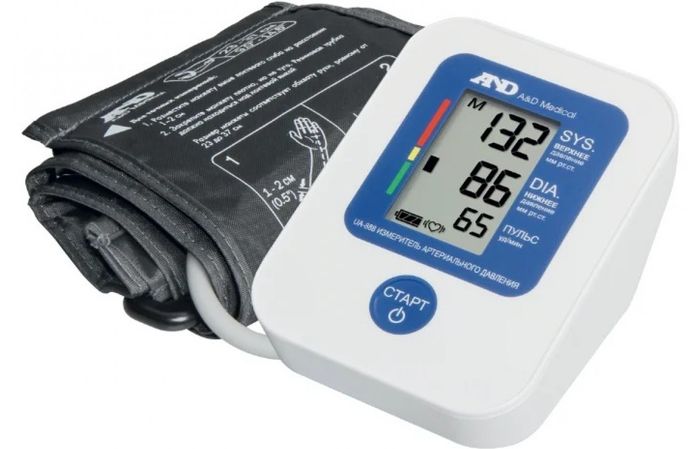 Автоматический тонометр AND UA-888E, произведенный в Японии, отличается компактными размерами. Манжета, подходящая для объема руки от 23 до 32 см, легко и безболезненно фиксируется на плече. Устройство работает от четырех батареек типа AA, также имеется возможность подключения адаптера. Пользователи могут выбрать режим с несколькими показателями, а также воспользоваться шкалой ВОЗ и функцией определения аритмии. Погрешность измерений составляет всего 3 мм ртутного столба. AND UA-888E прост в эксплуатации, недорог и не занимает много места.