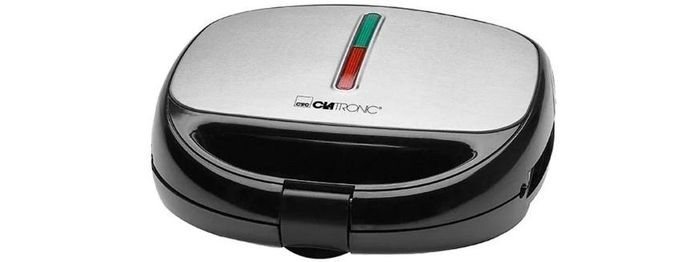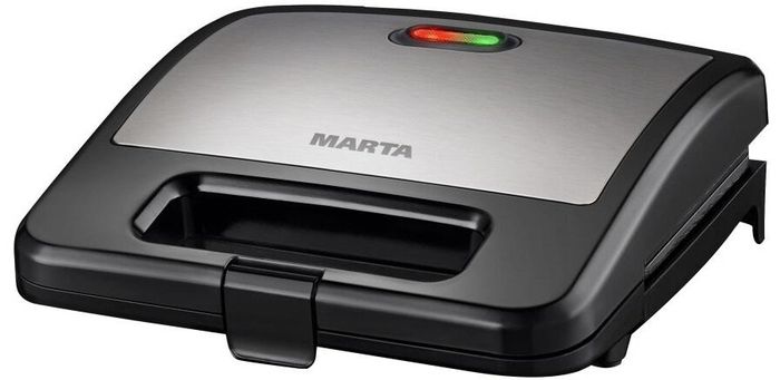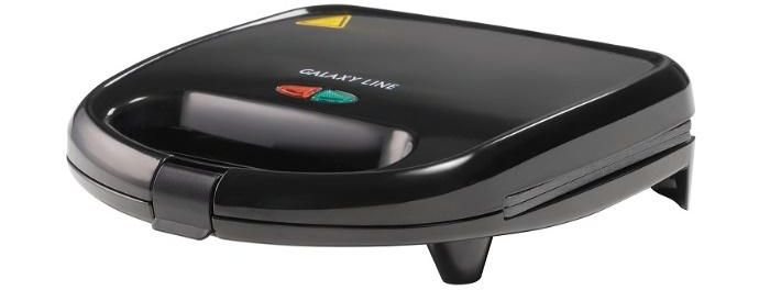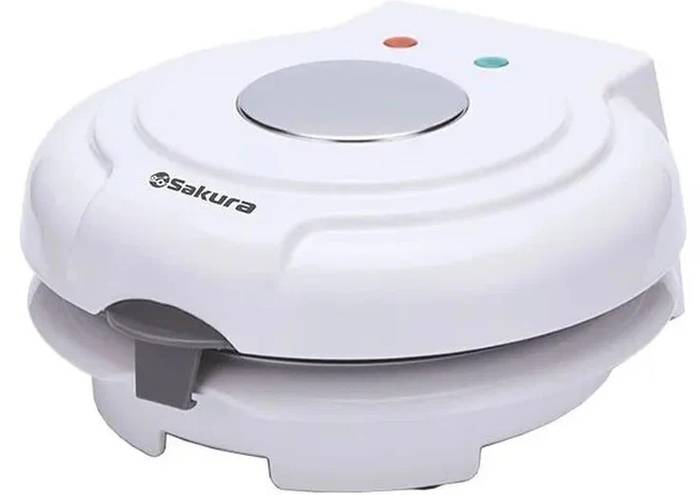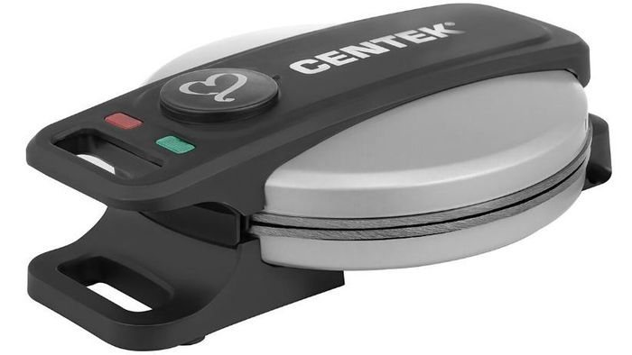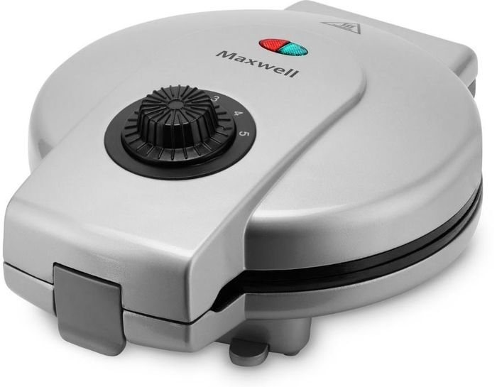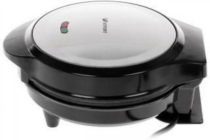Модель выполнена в стильном серебристо-чёрном пластиковом корпусе и оснащена крупными ручками. Она обладает мощностью 750 Вт и предлагает один температурный режим, позволяя одновременно готовить 2 порции десерта. Рабочая поверхность прогревается равномерно, что обеспечивает качественное пропекание теста на всей его толщине. Панель имеет тефлоновое покрытие, что значительно упрощает процесс очистки и предотвращает прилипание готового десерта к формам. Устройство отличается лёгкостью и компактными размерами, что позволяет удобно хранить его в вертикальном положении.