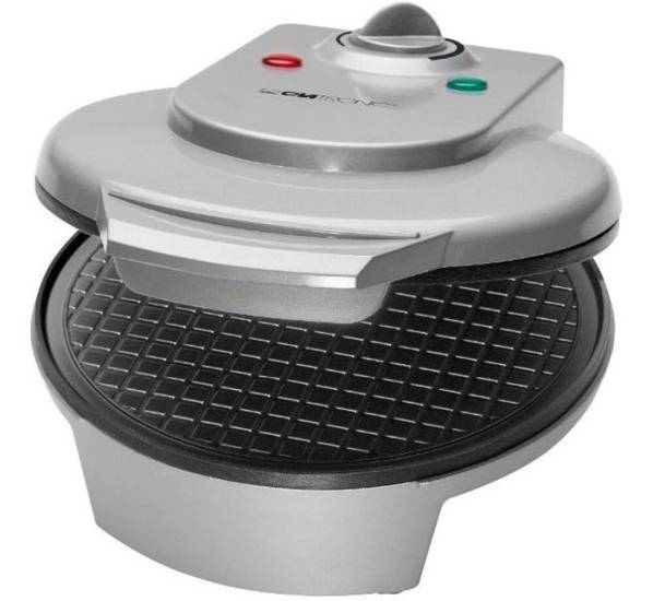 Вафельница с круглым корпусом в элегантном серебристо-чёрном исполнении обладает мощностью 640 Вт. Она изготовлена из термостойкого пластика и металлических компонентов. Каждая половина устройства оснащена отдельным нагревательным элементом, что обеспечивает равномерное приготовление вафель. Формы имеют антипригарное покрытие, которое легко очищается и предотвращает прилипание теста к панелям. На нижней части устройства находятся прорезиненные ножки, которые обеспечивают устойчивость и предотвращают скольжение прибора по столу во время работы. Данная модель не оснащена защёлкой, что позволяет регулировать толщину вафель простым нажатием на крышку.