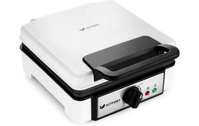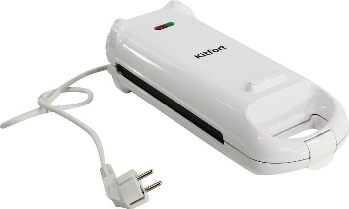 Эта компактная вафельница прямоугольной формы позволяет одновременно готовить две порции вкусного десерта. Корпус устройства изготовлен из прочного белого пластика, а на верхней крышке расположены световые индикаторы, которые сигнализируют о работе прибора и готовности к выпеканию. Мощность вафельницы составляет 700 Вт, а глубокие ячейки форм быстро нагреваются и остывают. Как и все модели от бренда Кикфорт, данная вафельница обладает качественным антипригарным покрытием и оснащена двумя независимыми нагревателями. Кроме того, устройство имеет надежную защёлку и прочную ручку, что обеспечивает удобство в использовании.