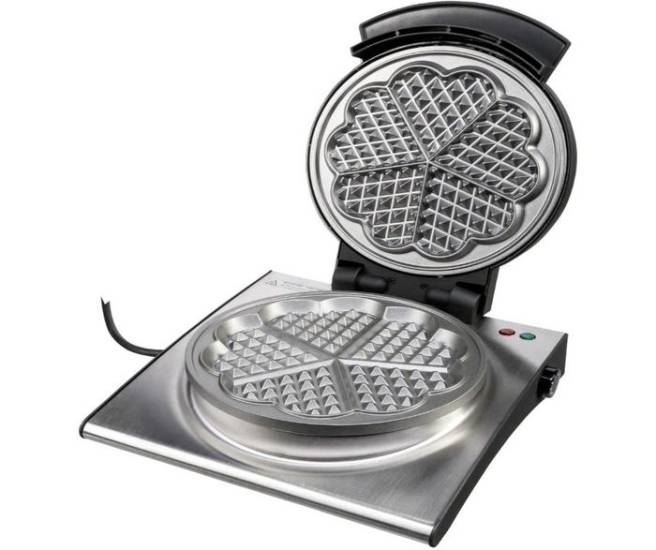 Элегантная вафельница с квадратным стальным основанием и черной матовой крышкой. Устройство обладает мощностью 1000 Вт, что обеспечивает равномерный прогрев рабочей поверхности панелей. За один раз вафельница готовит круглый десерт, состоящий из пяти отдельных сердечек. Формы имеют антипригарное покрытие и глубокие рифлёные ячейки. Модель оборудована терморегулятором, который предлагает пять температурных режимов для оптимального пропекания теста различной консистенции.