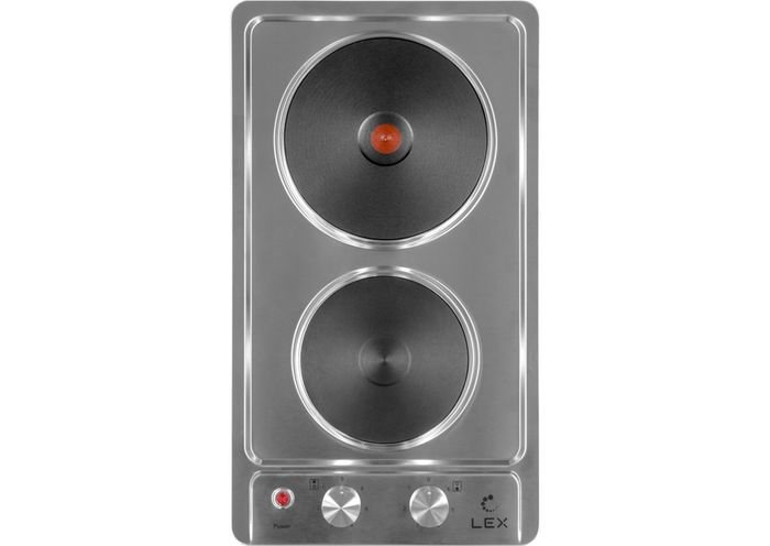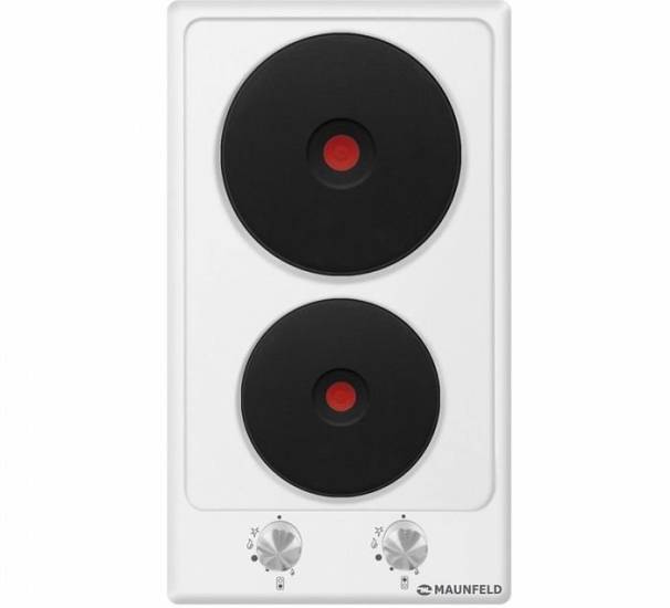 Управление устройством осуществляется через поворотные переключатели, размещенные на боковой стороне. На поверхности плиты расположены две чугунные конфорки с различной мощностью. Они накрыты классическими дисковыми элементами, которые обеспечивают равномерный прогрев и обладают высокой теплоотдачей.