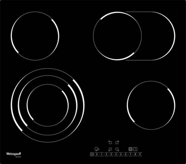 Электрическая варочная поверхность Hi-Light. Её рабочая поверхность изготовлена из стеклокерамики Vitro Ceramic Glass, которая легко очищается. Одна из четырёх конфорок оснащена трёхконтурной зоной расширения, а другая предназначена для нагрева длинной посуды, такой как гусятницы или казанки для плова. Современная сенсорная панель управления позволяет легко управлять устройством одним касанием.
