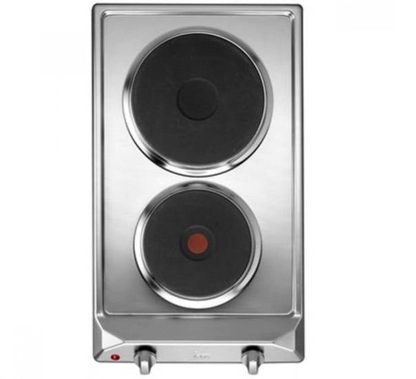 Варочная поверхность выполнена в черном цвете. Ее компактные размеры и тщательно продуманный дизайн делают ее идеальным решением для использования в ограниченных пространствах. Основным материалом, из которого изготовлена эта техника, является нержавеющая сталь. Это обеспечивает плиту высокой устойчивостью как к механическим повреждениям, так и к воздействию высоких температур. Управление двумя конфорками осуществляется с помощью поворотных переключателей, расположенных на передней панели устройства.