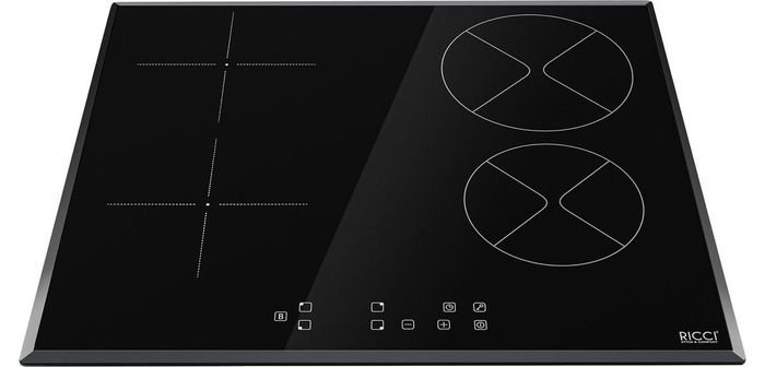 Индукционная варочная панель, поверхность которой изготовлена из высококачественной стеклокерамики. Она обладает интуитивно понятным управлением благодаря специальной сенсорной панели. Функции автоотключения, индикатор остаточного тепла и защита от детей обеспечивают безопасность использования. Модель от бренда RICCI имеет три конфорки.