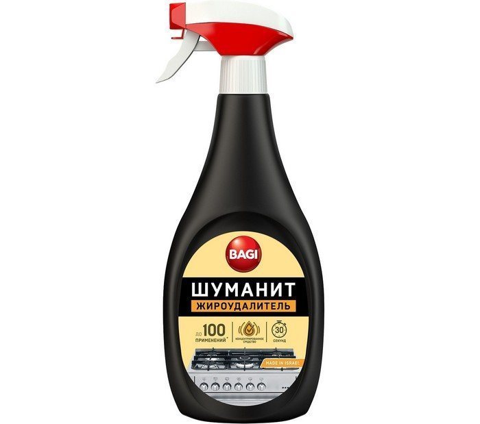 | Шуманит | Спрей | Мощное средство для удаления застарелого жира и нагара, быстро действует, подходит для духовок, плит, грилей. |