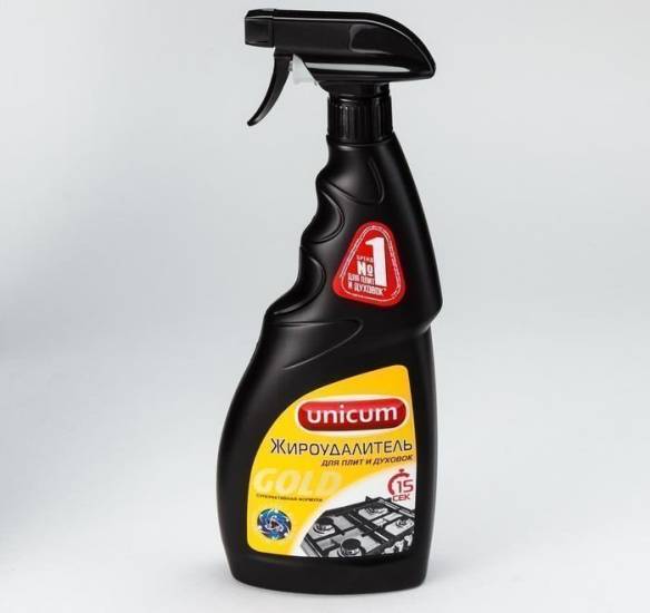 Уникум – это химический препарат-антижир, который способен за 20-30 секунд устранить практически любое загрязнение! Для старых пятен жира, копоти и нагара рекомендуется оставлять средство на поверхности не более одной минуты. Оно не оставляет царапин, липкой пленки или повреждений, которые могут возникнуть от использования химикатов. Однако стоит учесть, что у средства есть резкий и неприятный запах, обусловленный высоким содержанием растворителей. Из-за высокой концентрации щелочи рекомендуется работать в перчатках.