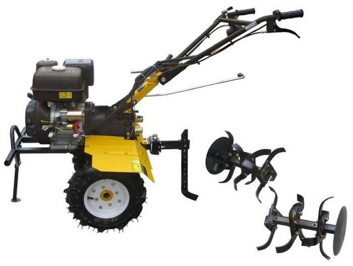 Мотоблок оснащён 4-тактным дизельным двигателем мощностью 7 л.с. Он совместим с различными навесными орудиями. Агрегат имеет вал отбора мощности, а ёмкость топливного бака составляет 6.5 л. Благодаря экономичному расходу топлива, устройство может работать длительное время без необходимости в дозаправке.