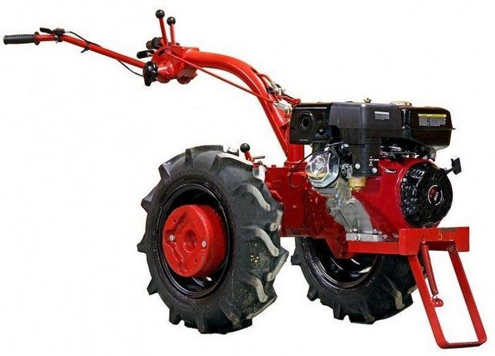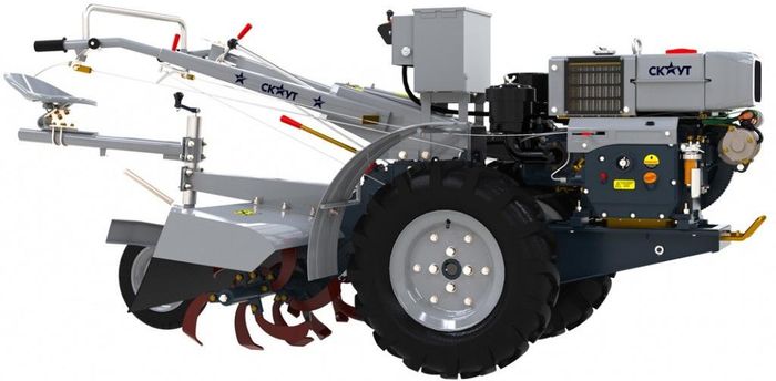 Техника оснащена дизельным двигателем мощностью 9 л.с. и имеет трёхступенчатую коробку передач, включающую две скорости для движения вперёд и одну реверсную. Это обеспечивает оптимальные условия для обработки почвы и транспортировки грузов. Запуск двигателя можно осуществлять как вручную, так и с помощью электростартера.