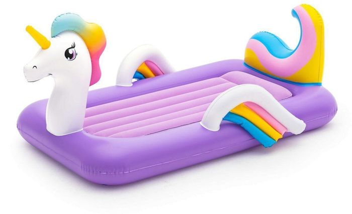 Матрас отличается высокой мягкостью и упругостью. Он легкий и воздушный, что делает его подходящим как для сна, так и для игр или даже плавания. Хотя у него нет боковых бортиков, велюровое покрытие сверху предотвращает соскальзывание.