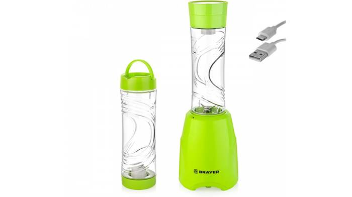 Чаша и корпус устройства выполнены из пластика. Управление блендером осуществляется механическим способом. В комплект входит дорожная бутылка. Компактные размеры блендера и наличие переносной емкости обеспечивают дополнительное удобство при длительных поездках. Несмотря на наличие лишь одной скорости, по своей мощности этот блендер не уступает более дорогим стационарным моделям.