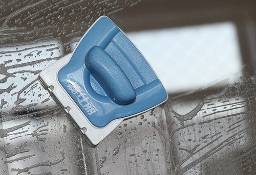 Изделие, изготовленное в Китае, имеет квадратную форму и предлагается в двух цветах: красный предназначен для одинарных стекол, а фиолетовый – для стеклопакетов толщиной 24 мм. Оно оснащено удобной ручкой, соединительным шнуром, поролоновыми вставками и гибкими скребками из термостойкой резины. Габариты составляют 10,5×11,0×6,5 см, а вес изделия – 450 г. В комплект входят сменные чистящие элементы. Средняя цена составляет до 1500 рублей.