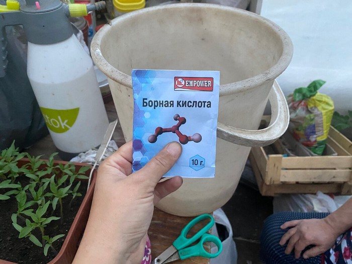 - Не рекомендуется опрыскивать рассаду борной кислотой. Молодые растения еще не окрепли, и даже небольшое превышение дозировки может их погубить. Если кустики выглядят слабыми, лучше использовать комплексное удобрение, содержащее бор в безопасной для растений концентрации.