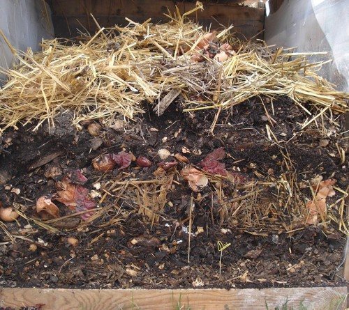 Материал следует закладывать так, чтобы высота компостной кучи была не более 1-1,5 метра. Это позволит воздуху свободно проникать в кучу. Отходы в компостере лучше прикрывать листьями, сеном или соломой.