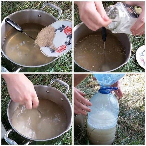 - Дрожжевую закваску. Для ее приготовления потребуется 1 столовая ложка сухих дрожжей и стакан сахара на 1 литр теплой воды. В центре смеси делают углубление и вливают туда раствор дрожжей.