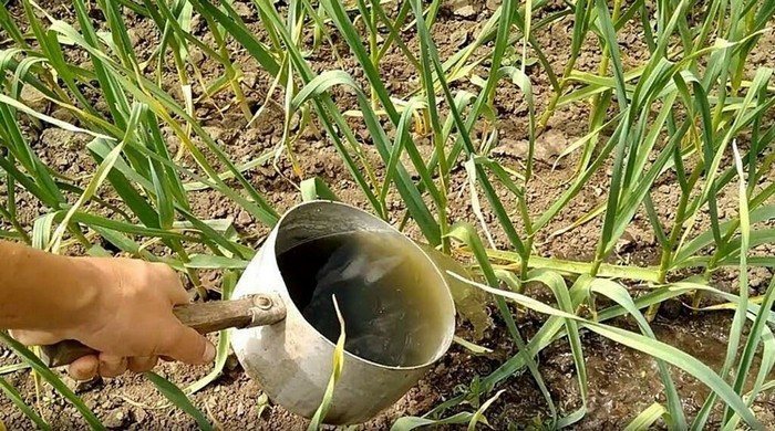 Для тех, кто предпочитает избегать химических удобрений на своем участке, существует доступное народное средство — древесная зола. В ведре объемом пять литров необходимо растворить 200 граммов золы в чистой воде и тщательно перемешать. Полученный раствор следует настоять в течение 4–5 часов. После этого можно полить чеснок. У этой культуры корни располагаются довольно глубоко, поэтому перед внесением удобрений рекомендуется сделать бороздку рядом с растением с помощью тяпки. После завершения процедуры ямку следует засыпать землей.