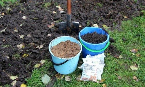 Осенью, после того как все процедуры были сделаны, на каждый квадратный метр следует внести по 10–12 кг компоста или перегноя, 20 г калийных и 30 г фосфорных удобрений. Весной участок перекапывают. За несколько дней до посадки подготавливают ямы глубиной 40–45 см, а шириной около 60.