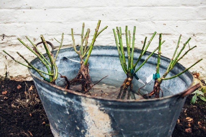 Если корни слишком длинные, их можно немного укоротить, но не стоит сильно подрезать. Основное внимание следует уделить обрезке побегов. У полиантовых и чайно-гибридных роз оставляют 2–3 почки, а у флорибунды можно оставить на одну почку больше. Парковые, почвопокровные и плетистые розы не требуют обрезки ни до, ни после посадки.