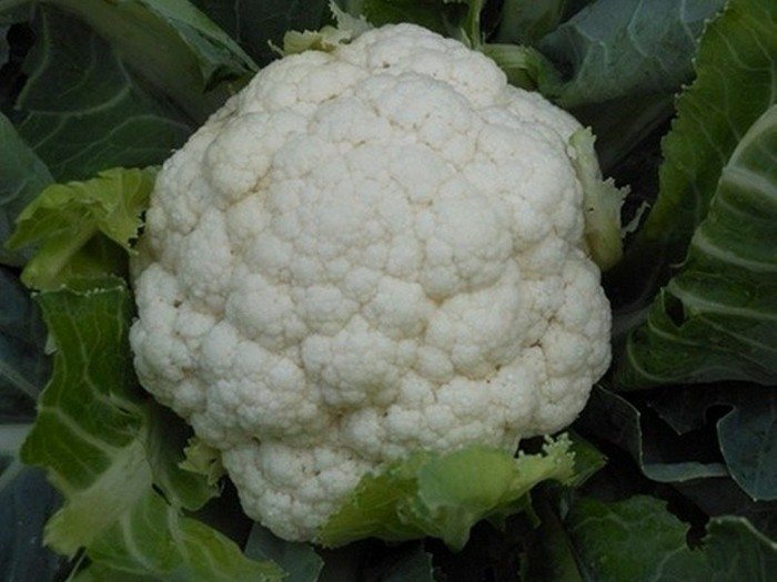 Этот ранний сорт цветной капусты широко распространен и успешно выращивается как в открытом грунте, так и в теплицах и парниках. Кочаны имеют компактную форму, белый цвет и округлую, слегка бугристую поверхность. Вес одного кочана может достигать 800 граммов, а средняя урожайность составляет около 3,2 килограмма на квадратный метр. Листья растения зеленые, с сероватым восковым налетом.