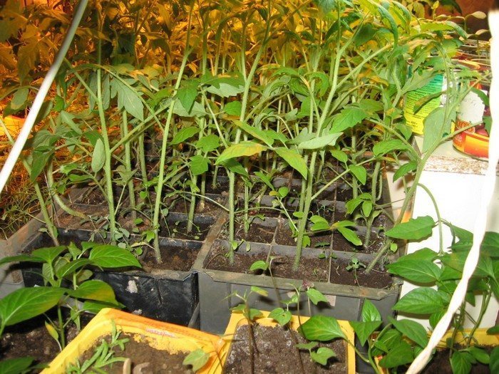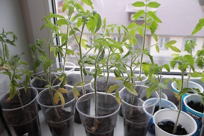 Когда растениям не хватает света, рассада томатов начинает стремительно тянуться к источнику света. Как правило, такие саженцы отличаются бледной окраской листьев и тонкими стеблями.