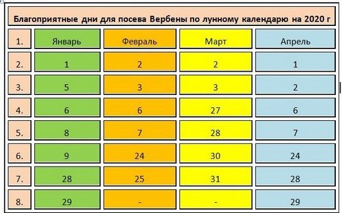 По Лунному посевному календарю цветовода наиболее благоприятные дни для посева вербены на рассаду: 1, 6-8, 11 февраля, 5-13 марта. Вербена — чрезвычайно популярное и универсальное цветущее растение, которое одинаково хорошо растет в подвесных корзинах, на клумбах, в альпинариях и оконных ящиках.