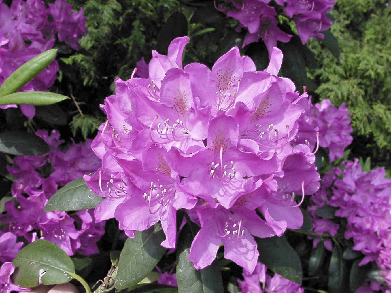 | Рододендрон Катевбинский (Rhododendron catawbiense) | Вечнозеленый кустарник до 2-3 м высотой. Цветки крупные, сиренево-пурпурные, собраны в плотные соцветия. Морозостоек, выдерживает до -29°C. | Предпочитает полутень, кислую, хорошо дренированную почву. Регулярный полив, особенно в засушливые периоды. Мульчирование приствольного круга. |