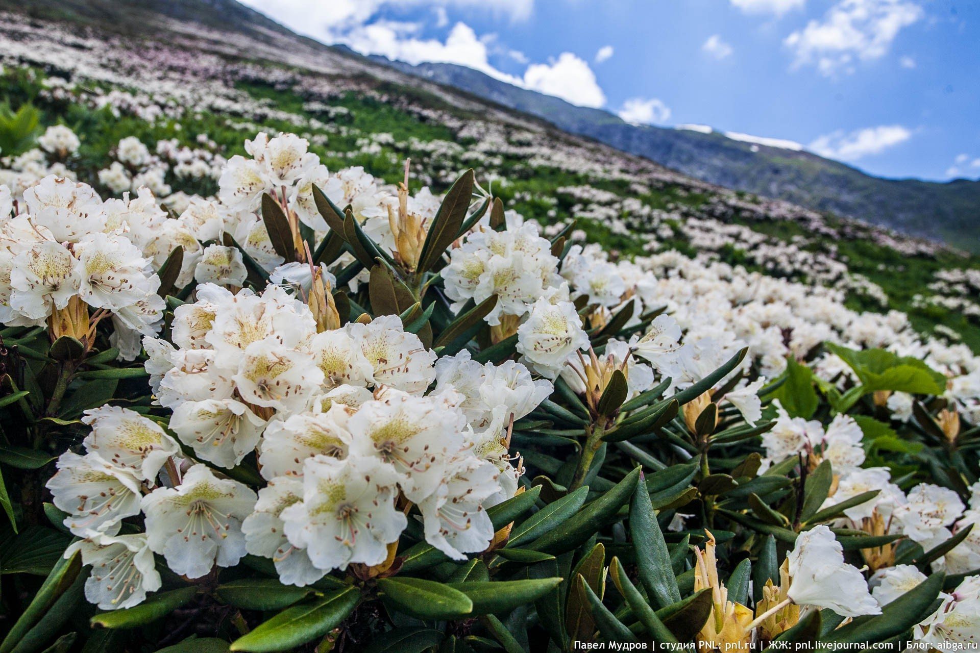 Рододендрон якушиманский способен изменять окраску своих цветков. С мая по июнь они постепенно трансформируются от светло-розового до белого оттенка.