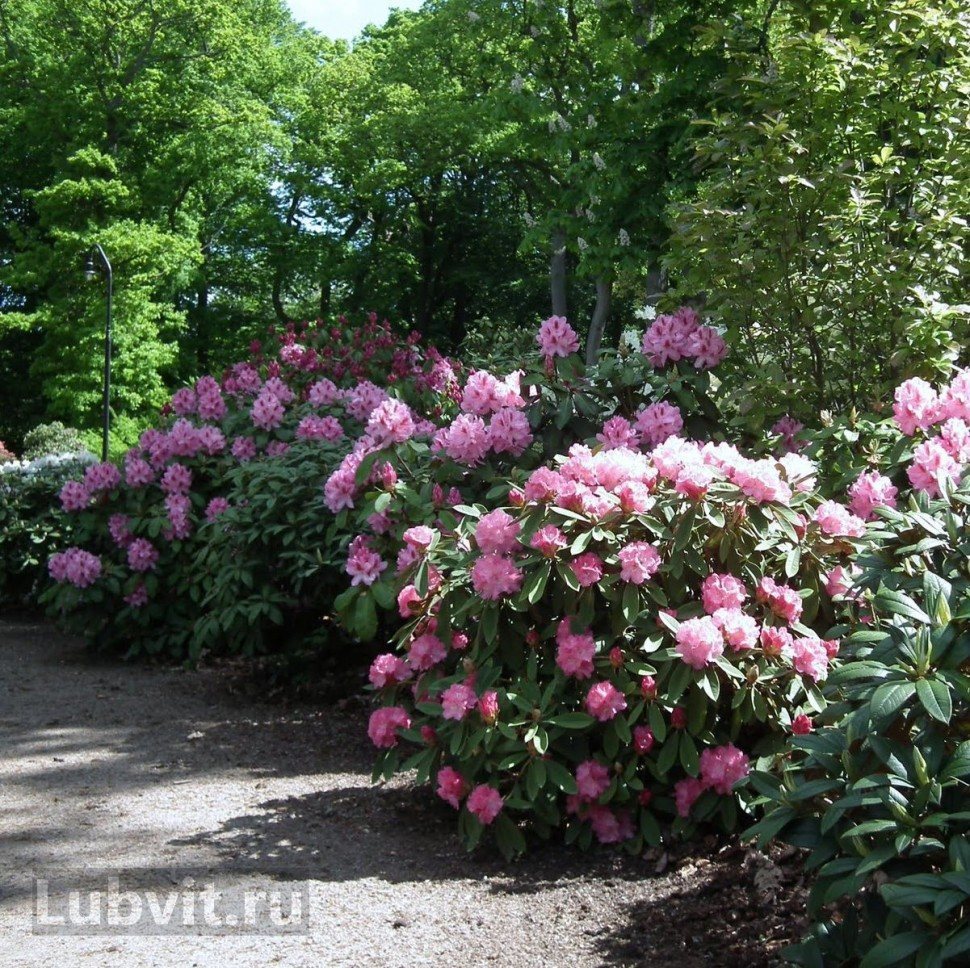 | Рододендрон ‘Scintillation’ | Вечнозеленый, раскидистый кустарник до 2 м высотой. Цветки нежно-розовые, с желто-коричневым пятном, крупные, собраны в шаровидные соцветия. Отличается обильным цветением. | Предпочитает полутень. Почва кислая, рыхлая, богатая органикой. Обильный полив в период роста и цветения. |