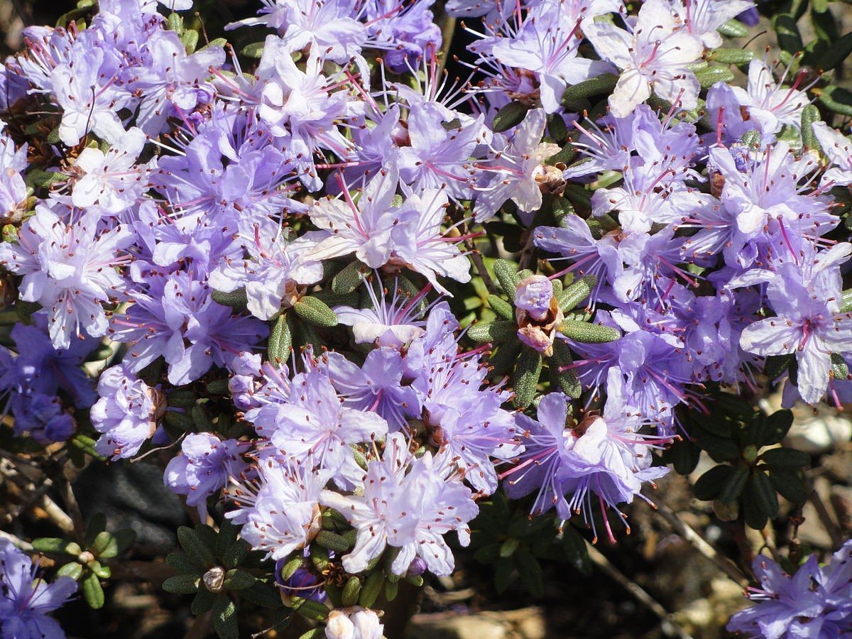 Также известный как плотный рододендрон, этот кустарник отличается ароматными мелкими листьями, которые образуют аккуратную крону. Импедитум начинает цвести раньше многих других видов, радуя глаз голубовато-сиреневыми цветами.