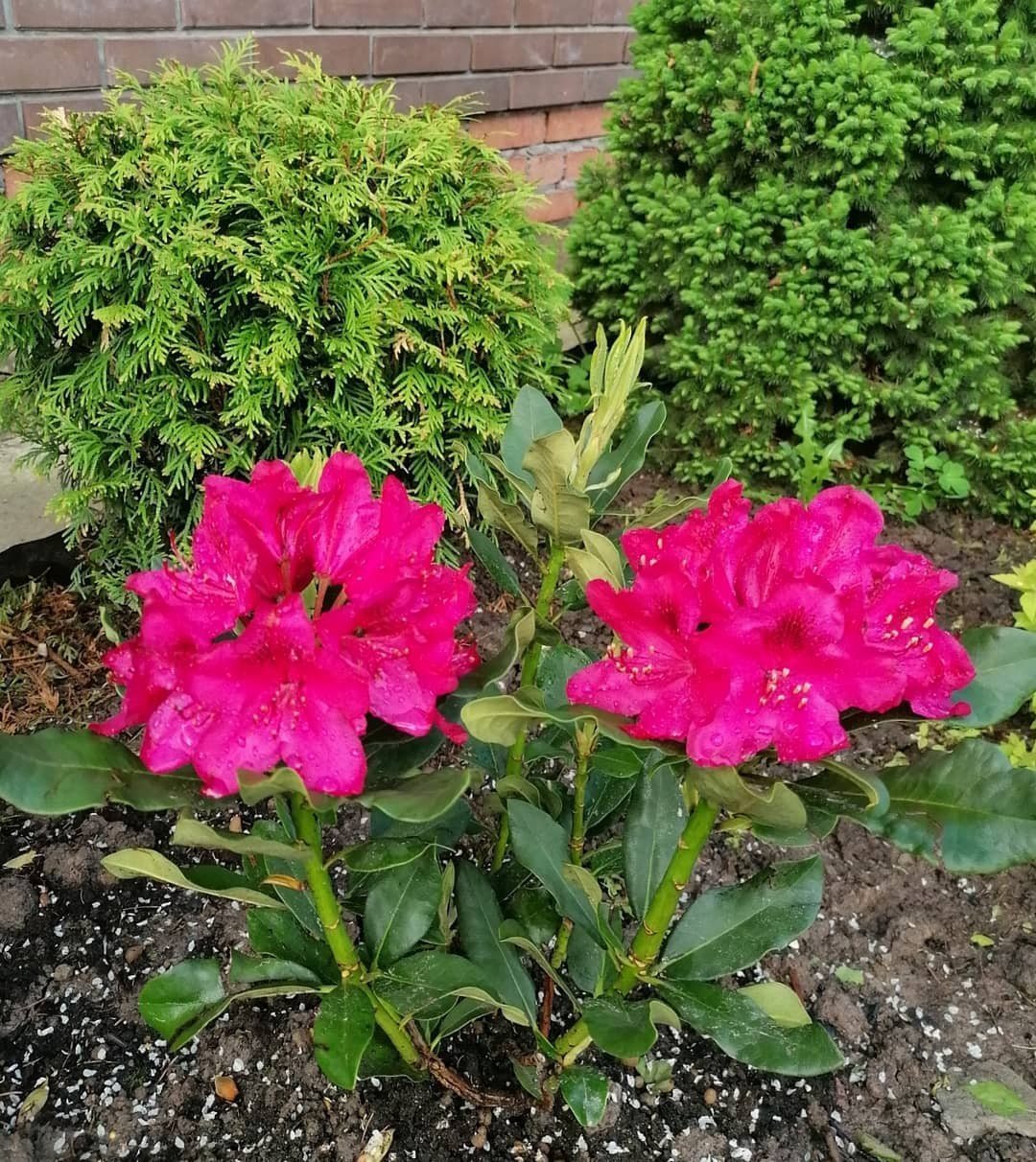 Оптимальным вариантом для размещения рододендронов будут участки под соснами или плодовыми деревьями. Эти кустарники прекрасно соседствуют с пихтами, можжевельниками и соснами, создавая эффектные композиции, которые радуют глаз в любое время года.