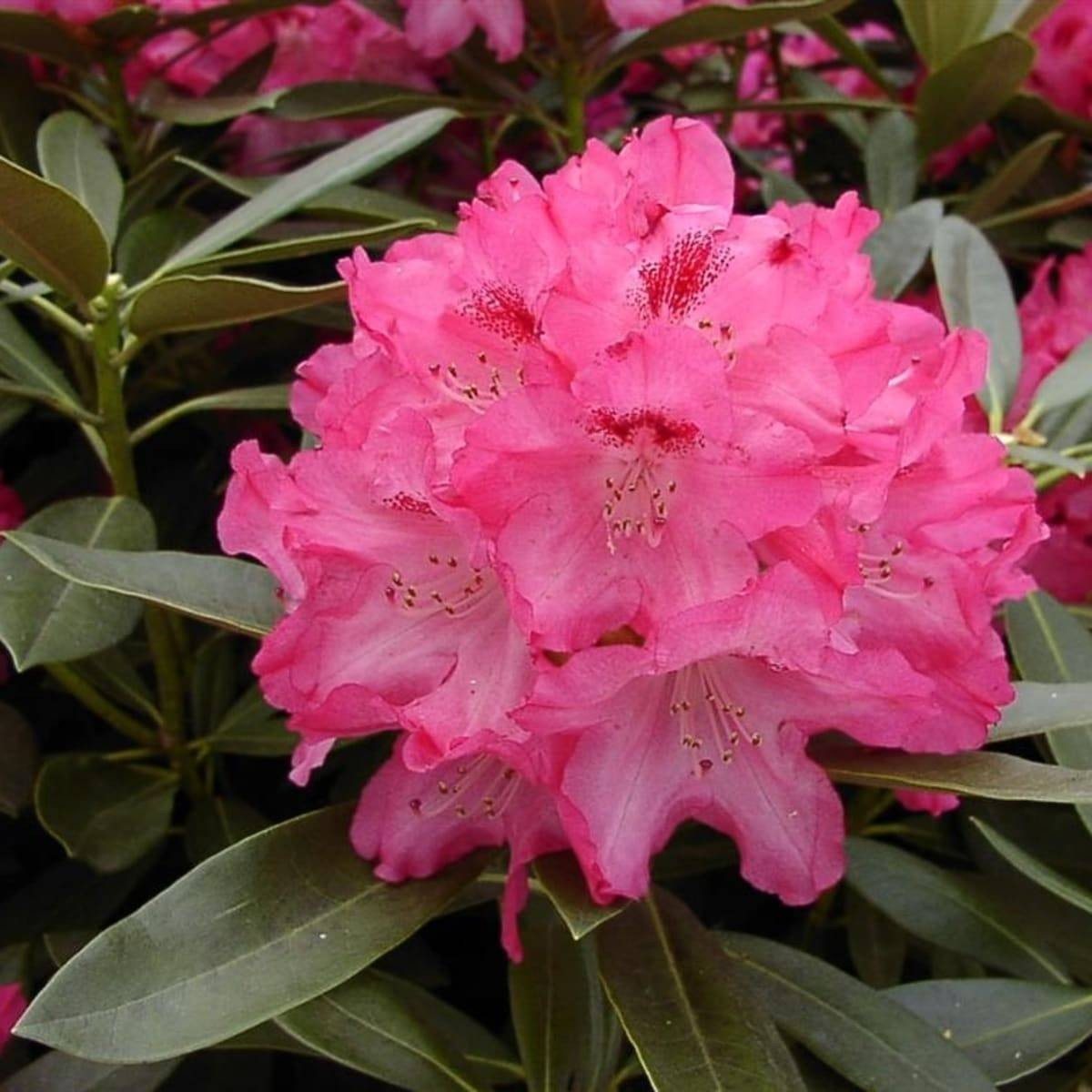 | Рододендрон ‘Roseum Elegans’ | Вечнозеленый, раскидистый кустарник до 2-3 м высотой. Цветки розово-лиловые, с желто-коричневым пятном, очень обильные. Отличается высокой зимостойкостью. | Хорошо растет в полутени. Требует кислой, влажной, но хорошо дренированной почвы. Регулярные подкормки специальными удобрениями для рододендронов. |