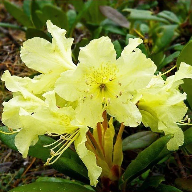 Эта разновидность рододендрона радует глаз жёлтыми и золотистыми цветами.