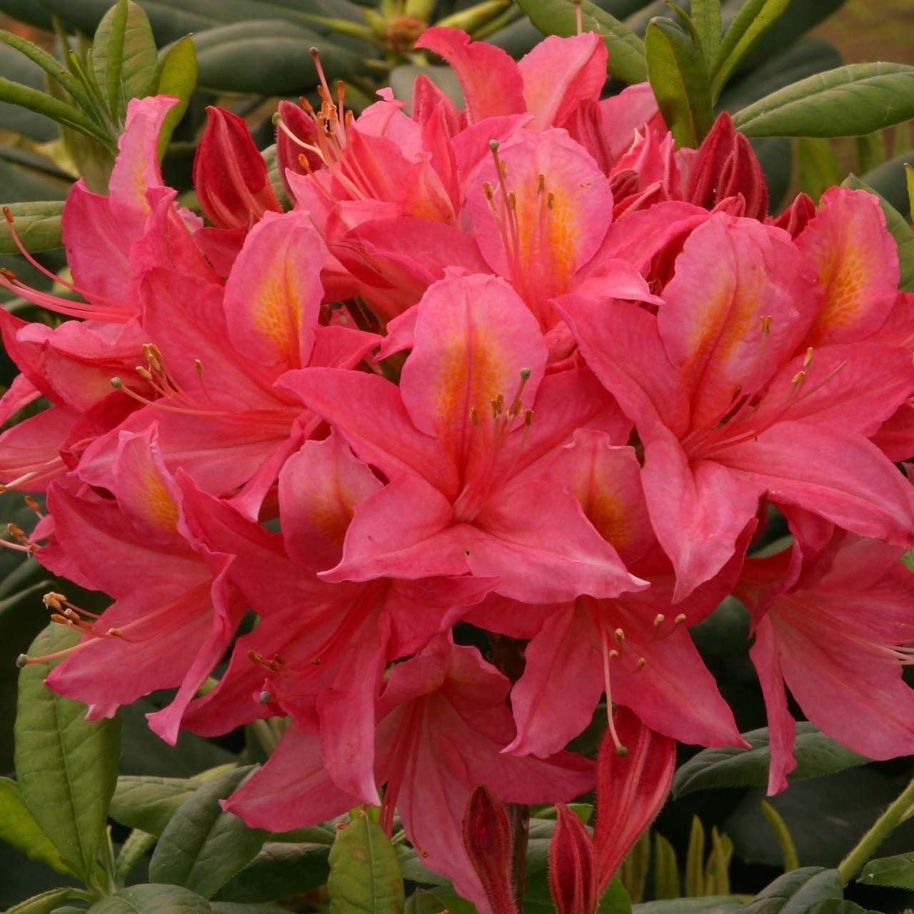 | Рододендрон Гибридный ‘Nova Zembla’ | Вечнозеленый, сильнорослый кустарник до 2-2,5 м высотой. Цветки ярко-красные, с темным пятном, крупные, собраны в шаровидные соцветия. Один из самых популярных и надежных сортов. | Предпочитает защищенные от ветра места с рассеянным светом. Почва кислая, рыхлая, богатая органикой. Обильный полив в период роста и цветения. Зимнее укрытие в регионах с суровыми зимами. |