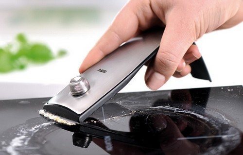 - Благодаря регулируемому углу наклона лезвия, не оставляет царапин и повреждений на варочной панели.